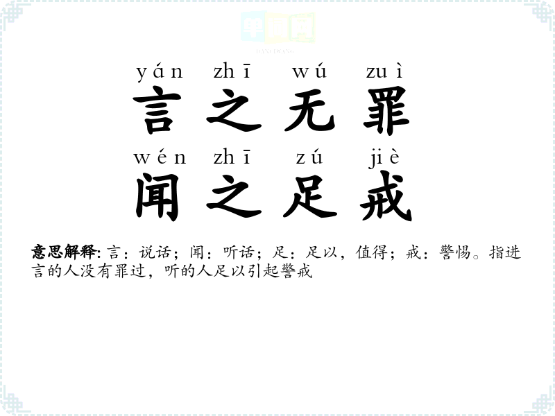 | 一言一行 | 每句话,每个行动。 |