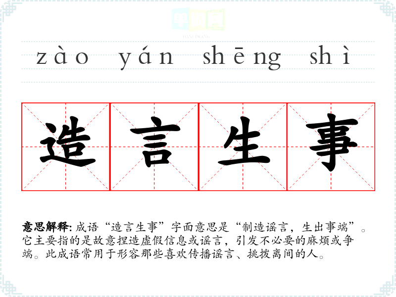 “造言生事”常常带有负面情感,令人联想到背叛、不信任和社会混乱。它提醒人们在信息传播中要保持警惕,重视事实的真实性。