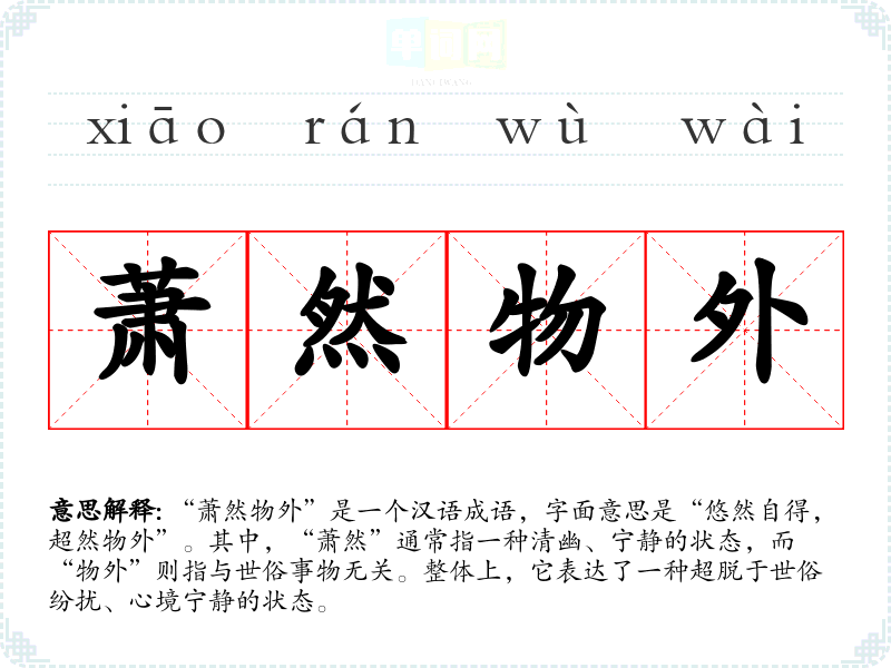 通过对“萧然物外”的学,我深刻理解到在现代生活中保持内心的宁静与超脱是多么重要。这不仅有助于提升个人的心理素质,也使得我们的表达更加丰富和深刻。在语言学中,掌握这样的成语能够增强我们的文化理解和表达能力。