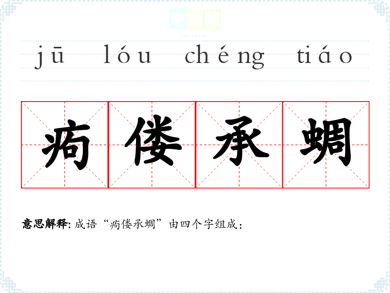 字面意思可以理解为:残疾的人承受着蝉鸣的声音,象征着一个人虽然身体不便,但仍然承受着生活中的种种压力或困扰。引申义是形容人身处逆境,承受着痛苦的状况。
