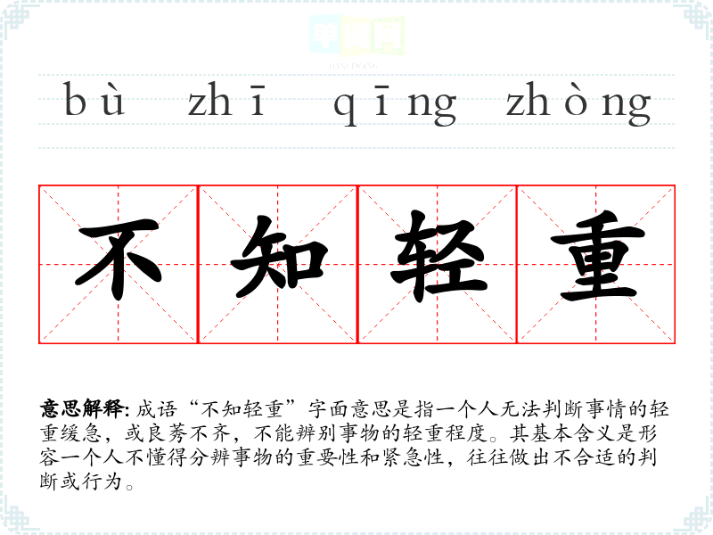 | 不知轻重 | 不懂得事情要紧不要紧。 |