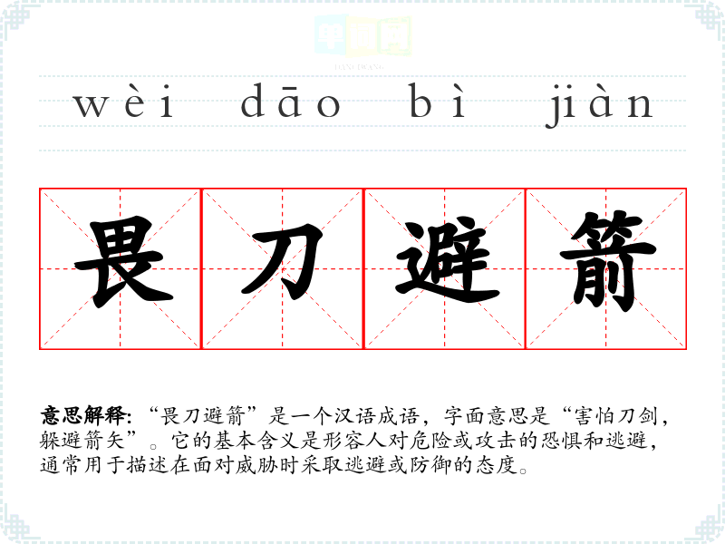 - “迎难而上”:形容勇敢面对困难,与“畏刀避箭”形成鲜明对比。