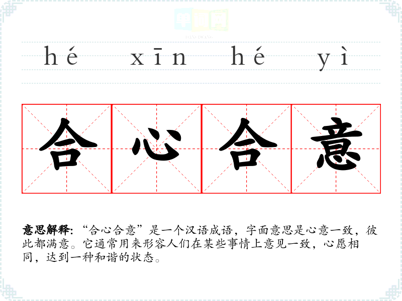 成语分析:合心合意