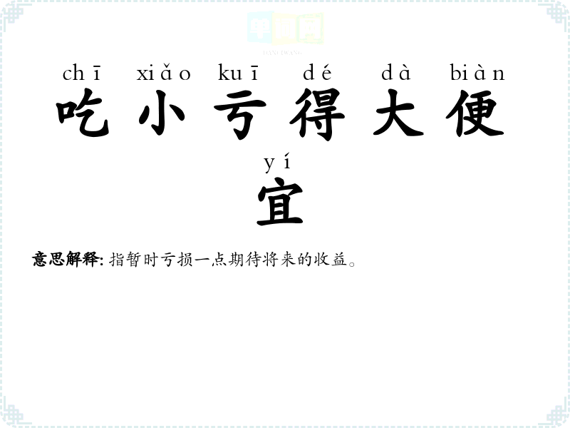 | 吃小亏得大便宜 | 指暂时亏损一点期待将来的收益。 |