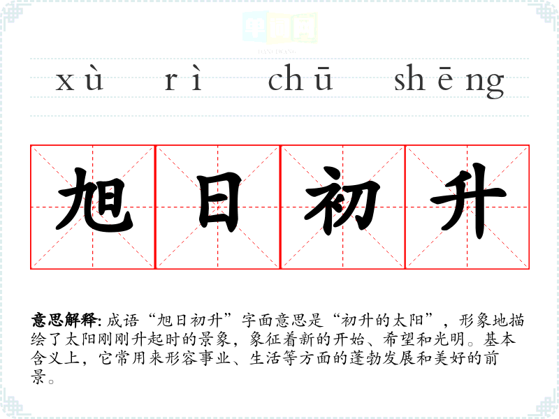 - 蒸蒸日上:形容事业、生活等方面不断向上发展,与“旭日初升”一样传达积极向上的意义。