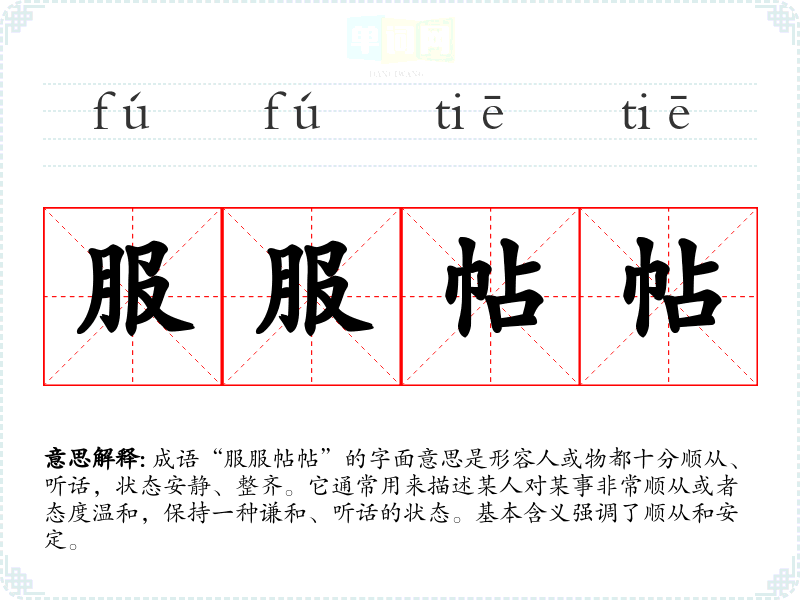 | 服服贴贴 | 指让人信服或物品平整 |
