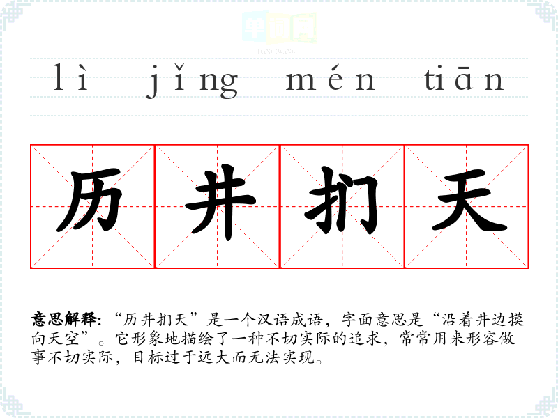 “历井扪天”让我深刻理解到务实的重要性。在学和表达中,这一成语的使用帮助我更加明智地制定目标和计划,避免陷入空想的陷阱。它不仅是对语言的学,更是对人生哲学的思考。
