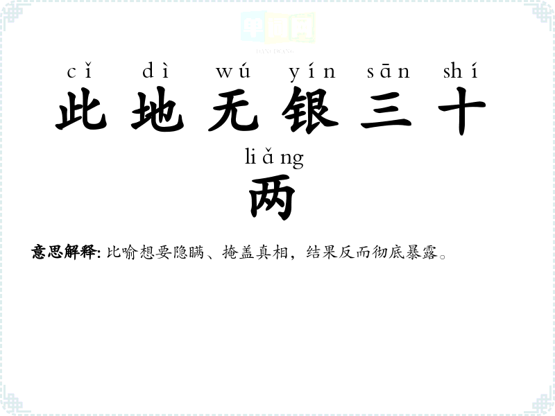 | 此地无银三十两 | 比喻想要隐瞒、掩盖真相,结果反而彻底暴露。 |