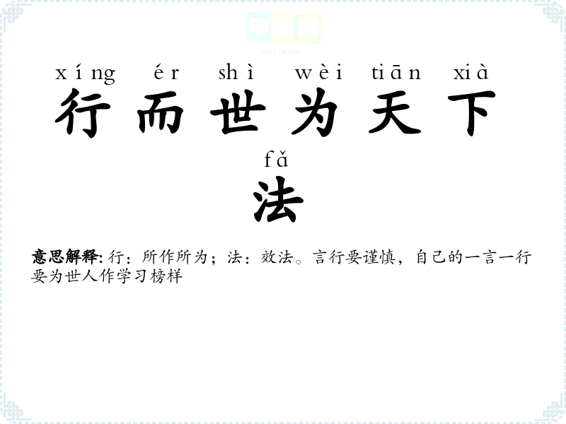 | 一言一行 | 每句话,每个行动。 |