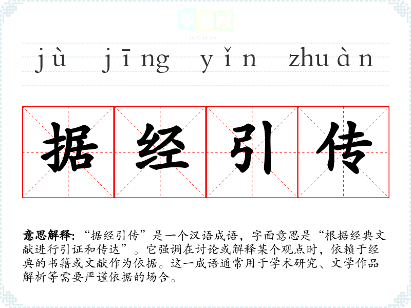 - 日常对话:在讨论某个历史或文化问题时,人们可能会提到“据经引传”来说明其观点的依据。