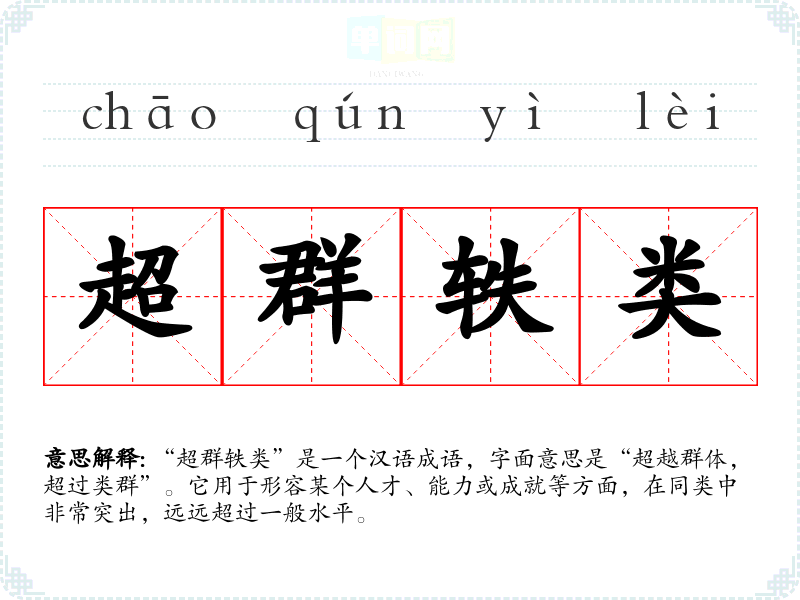 | 超伦轶群 | 伦:同类;轶:超过。形容超群出众。 |