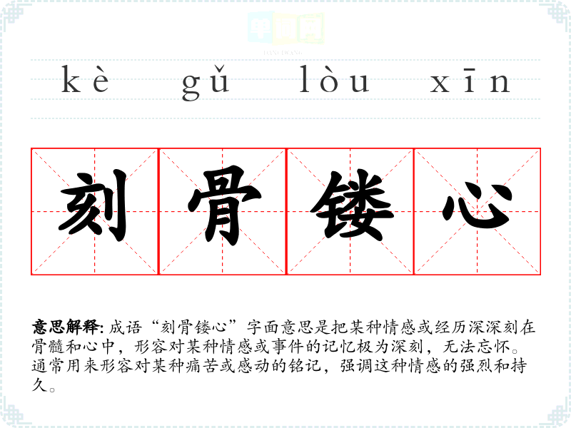 “刻骨镂心”源于古代汉语,具体的历史背景并不十分明确,但可追溯到对深刻情感的表述。在古代文学中,常常用类似的方式来形容对亲情、爱情、友情或某种重大**的深刻铭记。与此相关的典故可能有《庄子》中的相关论述,强调心灵深处的感受。