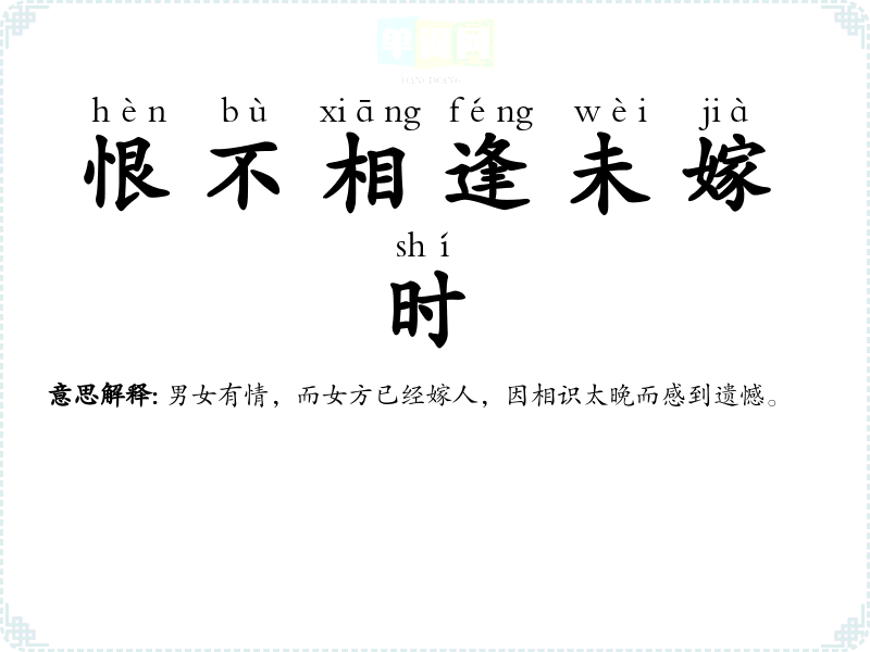 | 女大当嫁 | 指女子成年后须及时出嫁。同“女长须嫁”。 |