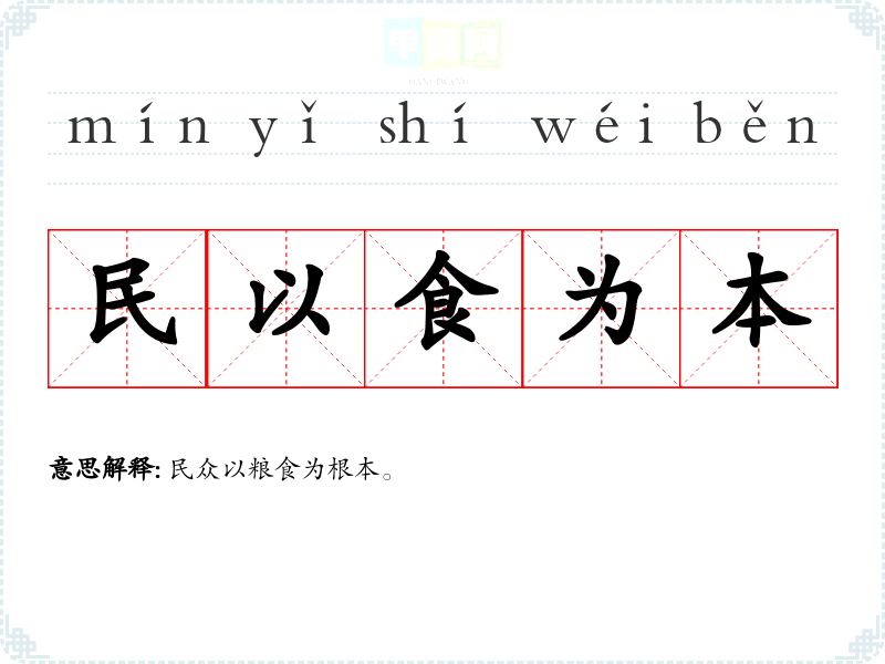 | 民以食为本 | 民众以粮食为根本。 |