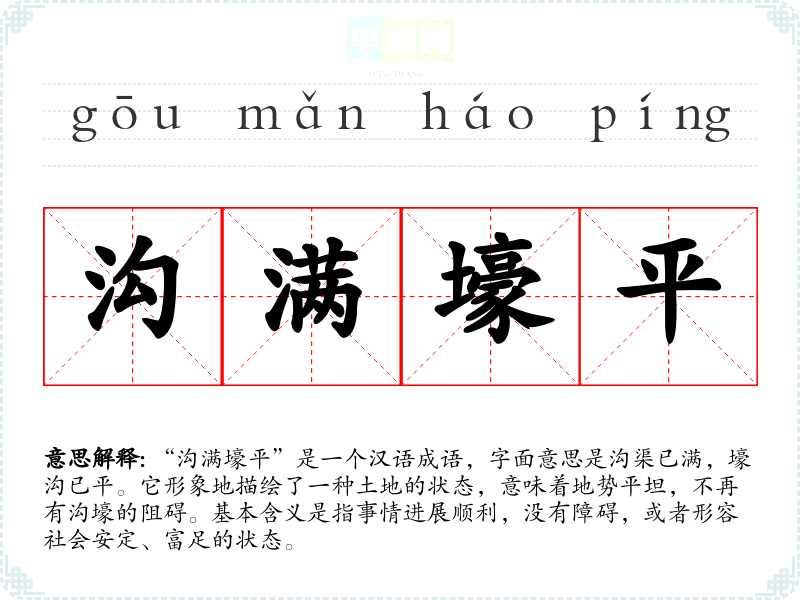 通过对“沟满壕平”的深入学,我意识到它不仅是一种生活状态的描绘,也是一种对美好未来的期许。在语言学和表达中,这一成语提醒我关注生活的积极面,激励我在追求美好生活的道路上不懈努力。