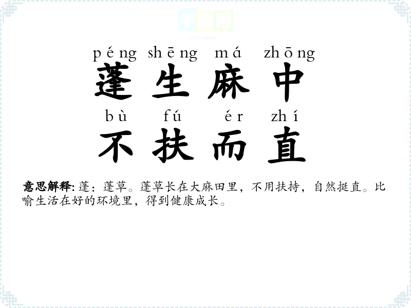 | 桑弧蓬矢 | 古代男子出生,射人用桑木做的弓,蓬草做的箭,射天地四方,表示有远大志向的意思。 |