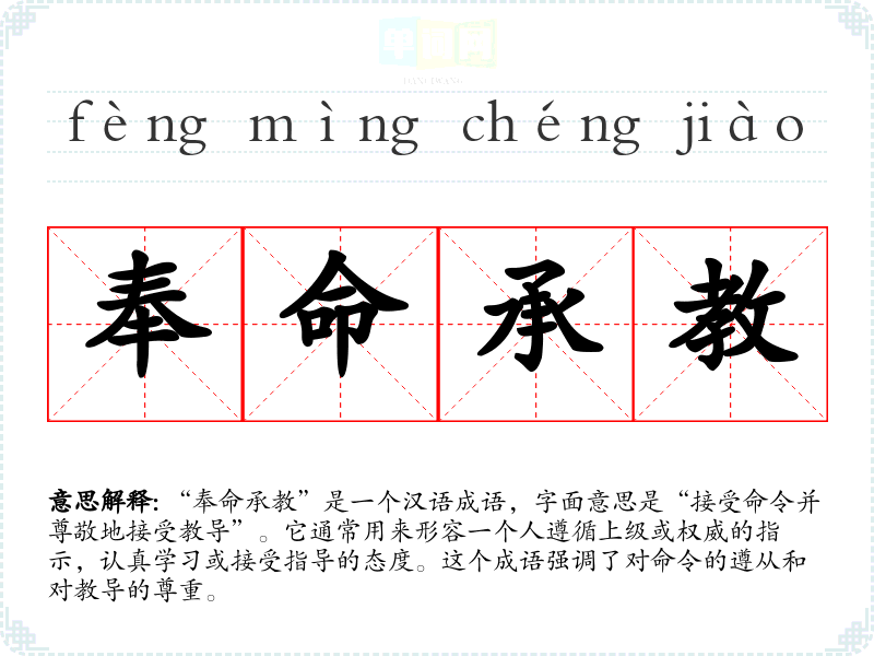 通过对“奉命承教”的学,我深刻认识到在语言学和表达中,尊重和谦逊的重要性。这不仅适用于学*知识,也适用于生活中的各个方面,提醒我们要有开放的心态,愿意接受他人的意见和建议,从而不断成长与进步。