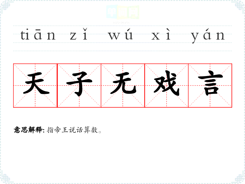 | 天子无戏言 | 指帝王说话算数。 |