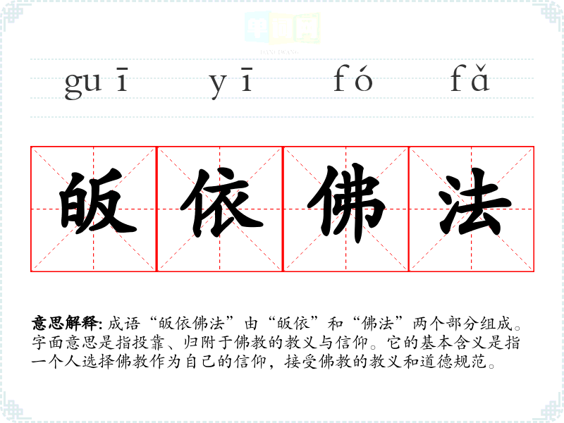 - 同义成语:信仰**、归附佛门