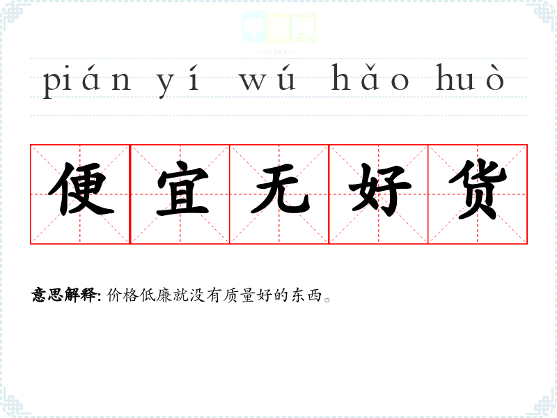 | 便宜无好货 | 价格低廉就没有质量好的东西。 |