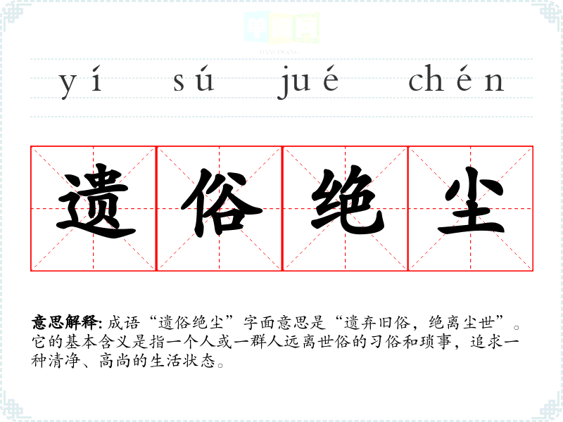| 遗俗绝尘 | 指超脱尘俗而避世隐居。 |
