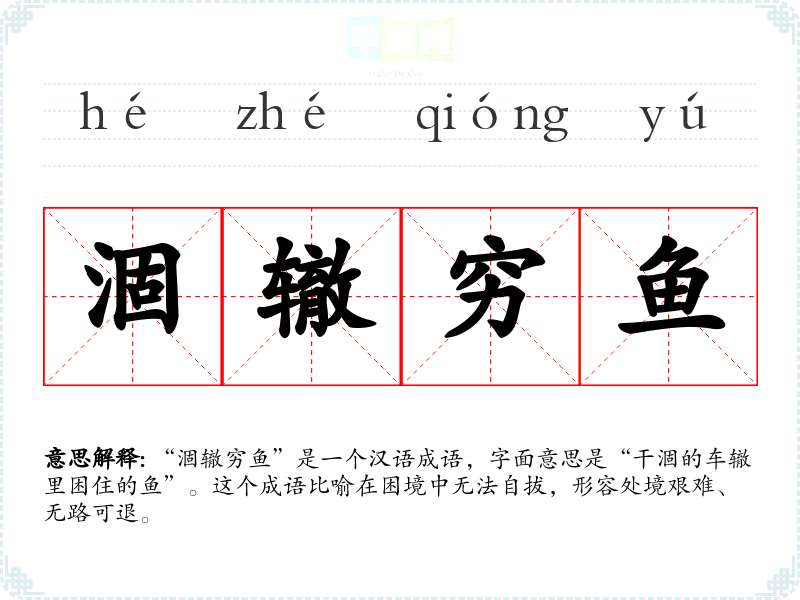 成语来源于《战国策·赵策》,原文是:“涸辙之鲋,焉用为?”意思是说在干涸的车辙中,鱼儿被困住,无法生存。这个成语反映了当时社会的艰难与无奈,常被用来形容处境极端困窘的人。