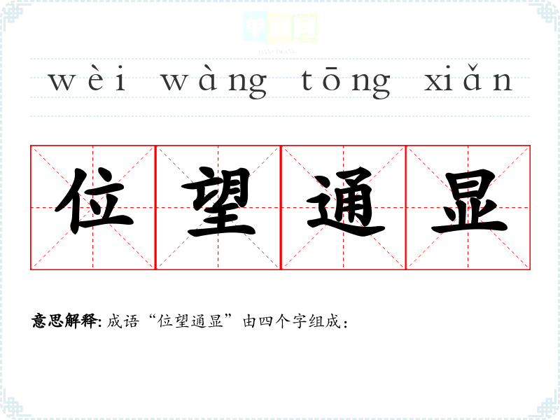 成语“位望通显”由四个字组成: