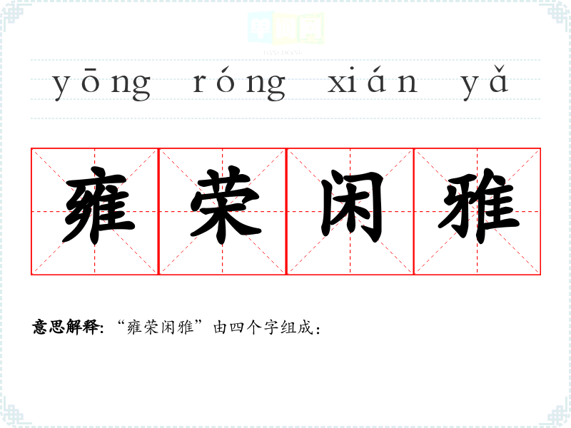 综合来看,“雍荣闲雅”形容一种和谐美好的环境或氛围,给人一种安逸、悠闲而又高雅的感受。