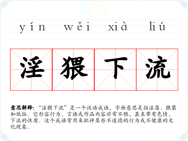 该成语常用于文学作品、社会评论、演讲及日常对话中,尤其在讨论社会风气、文化现象或某些不良行为时。例如,批评某些网络小说或影视作品时,可以用“淫猥下流”来形容其内容的低俗。
