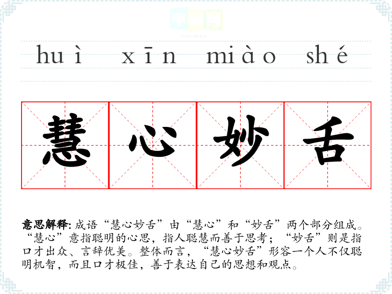 | 慧心妙舌 | 资质聪颖,口才犀利。 |