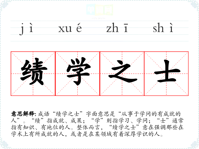 “绩学之士”并不是一个传统的成语,而是在现代汉语中逐渐被使用的词汇。其构成要素“绩”、“学”、“士”在古代文献中常常出现,特别是在对士人的描述中,强调了他们的学识和成就。例如,古代的士人被寄予厚望,承担着传承和发扬文化的责任。