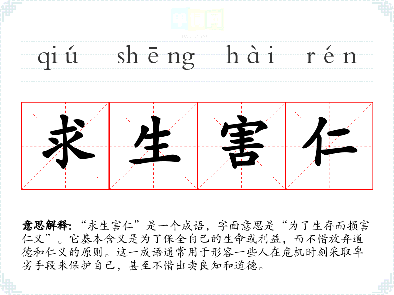 - 日常对话:在谈论某些社会现象或个人行为时,人们可能会用“求生害仁”来评价他人,比如在商业竞争中,一些人为了利益而采取不当手段。