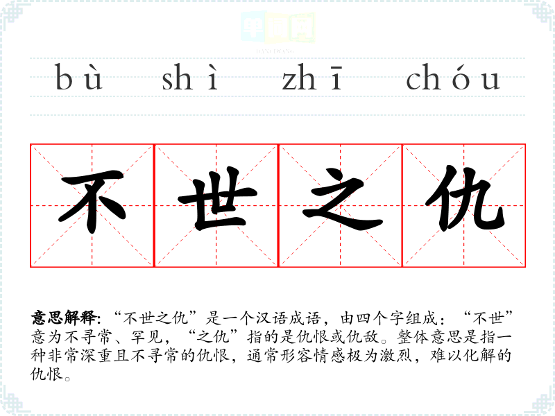 | 不世之仇 | 不世:非凡。指极大的仇恨 |