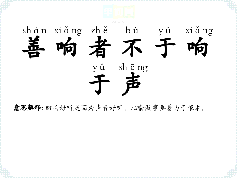| 善响者不于响于声 | 回响好听是因为声音好听。比喻做事要着力于根本。 |