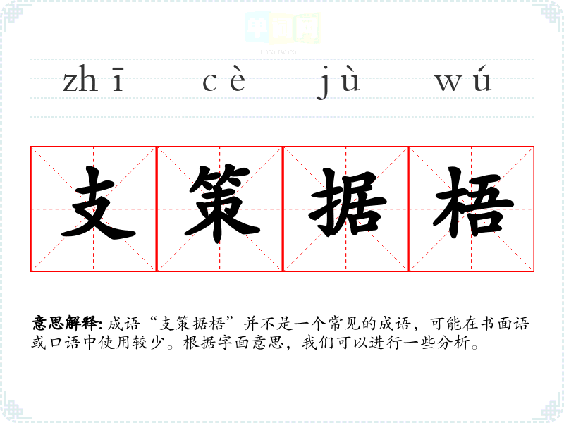 成语“支策据梧”并不是一个常见的成语,可能在书面语或口语中使用较少。根据字面意思,我们可以进行一些分析。