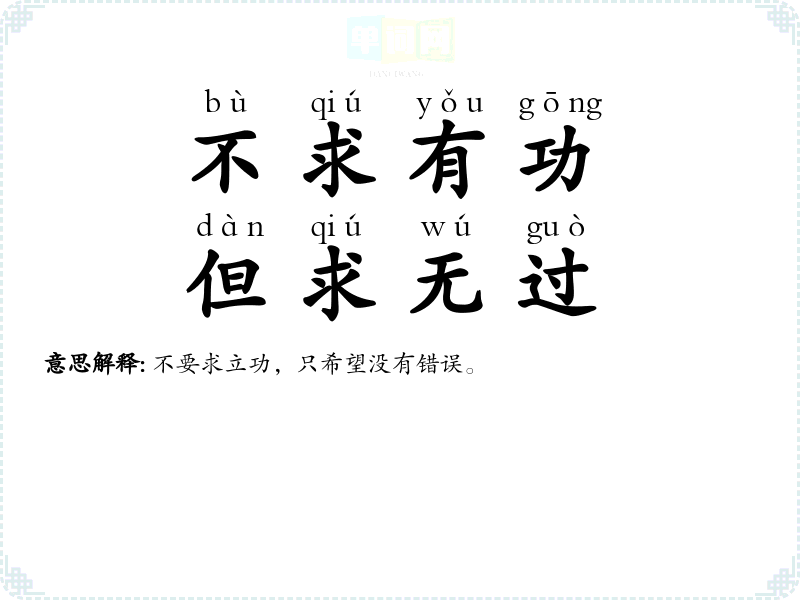 | 不求有功,但求无过 | 不要求立功,只希望没有错误。 |