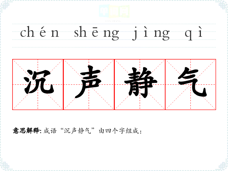 因此,“沉声静气”整体意思是形容一个人内心平静,情绪稳定,能够理智地应对各种情况,表现出一种从容不迫的气质。