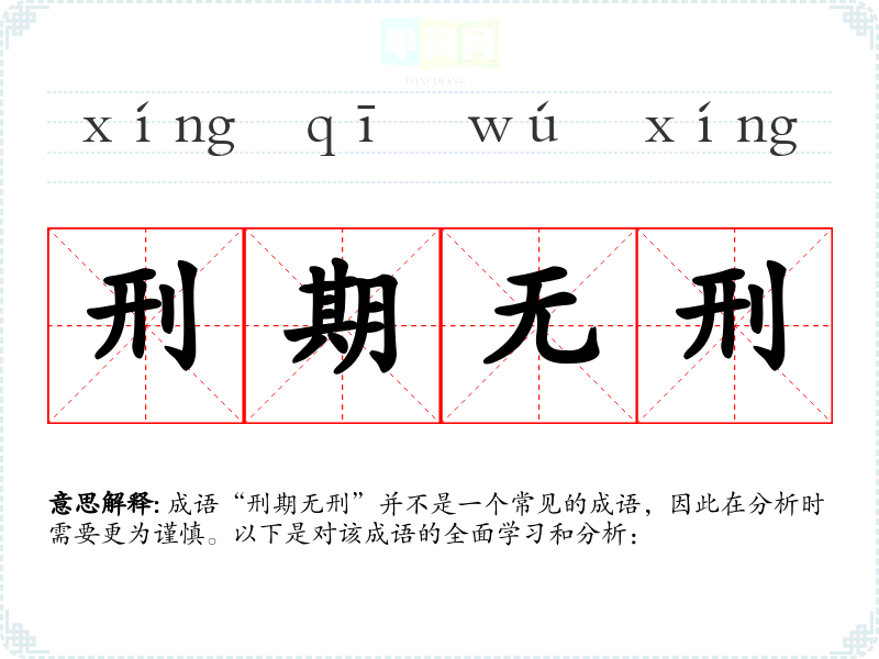 成语“刑期无刑”并不是一个常见的成语,因此在分析时需要更为谨慎。以下是对该成语的全面学习和分析: