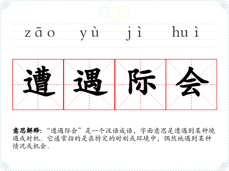 “遭遇际会”是一个汉语成语,字面意思是遭遇到某种境遇或时机。它通常指的是在特定的时刻或环境中,偶然地遇到某种情况或机会。