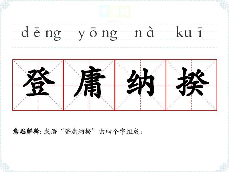 成语“登庸纳揆”由四个字组成: