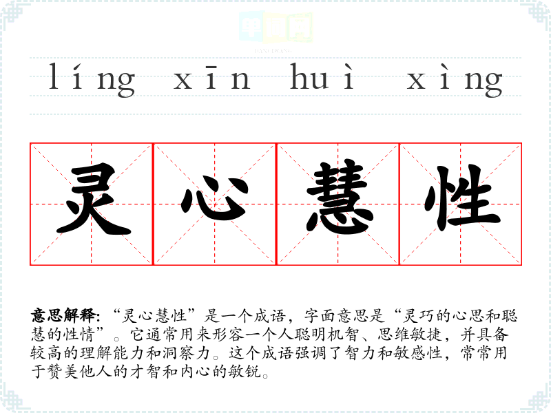 | 灵心慧性 | 指聪慧的天资。 |