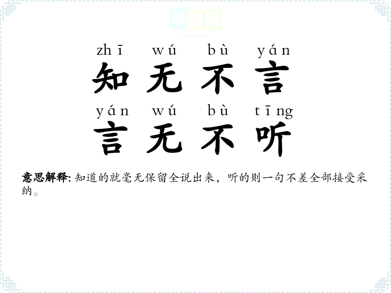 | 知之为知之,不知为不知 | 懂就是懂,不懂就是不懂。 |