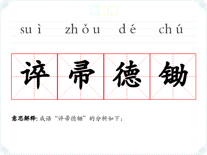 “谇帚德锄”是一个比较少见的成语,由四个字组成。字面意思是“谇”表示恶劣的言辞,“帚”指扫帚,“德”则是品德或德行,“锄”是锄头。整体来看,这个成语可以理解为对恶劣言辞和不良行为的清除和抵制,强调通过善良的品德来对抗邪恶。