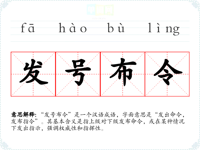 “发号布令”是一个汉语成语,字面意思是“发出命令,发布指令”。其基本含义是指上级对下级发布命令,或在某种情况下发出指示,强调权威性和指挥性。