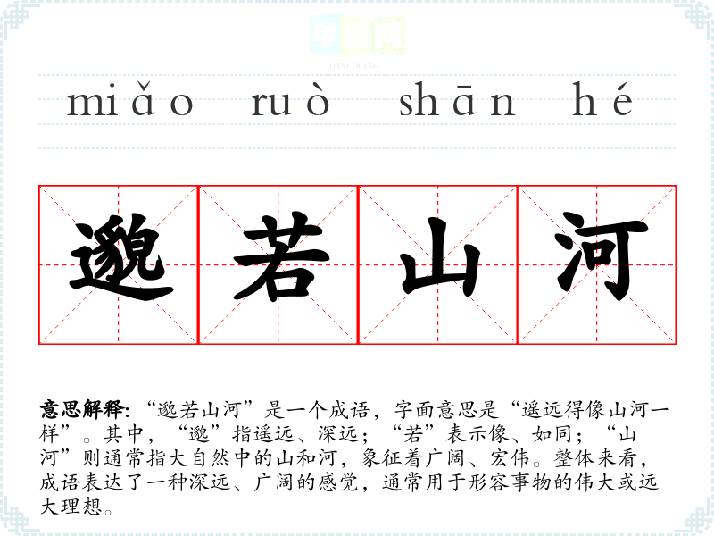 通过对“邈若山河”的学,我认识到这个成语不仅富有诗意,而且能够深刻表达理想与追求的重要性。在语言学和表达中,掌握这样富有表现力的成语,可以使我的语言更加丰富,也能更好地传达情感与思想。